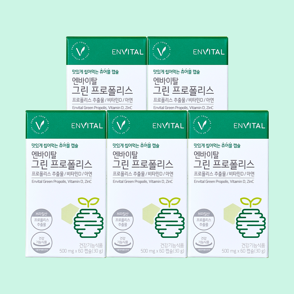 | 기능정보 | 프로폴리스추출물 : 항산화·구강에서의 항균작용에 도움을 줄 수 있음. 비타민D : 칼슘과 인이 흡수되고 이용되는데 필요, 뼈의 형성과 유지에 필요, 골다공증발생 위험 감소에 도움을 줌. 아연 : 정상적인 면역기능에 필요, 정상적인 세포분열에 필요. |