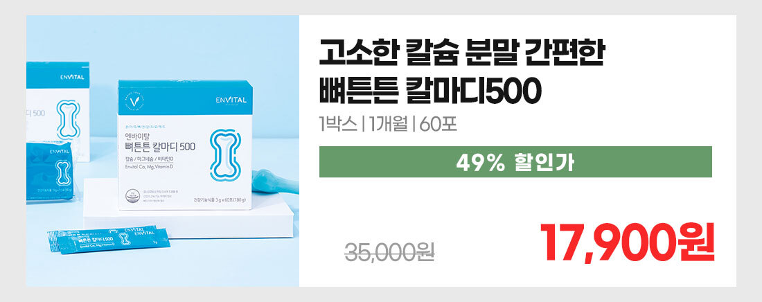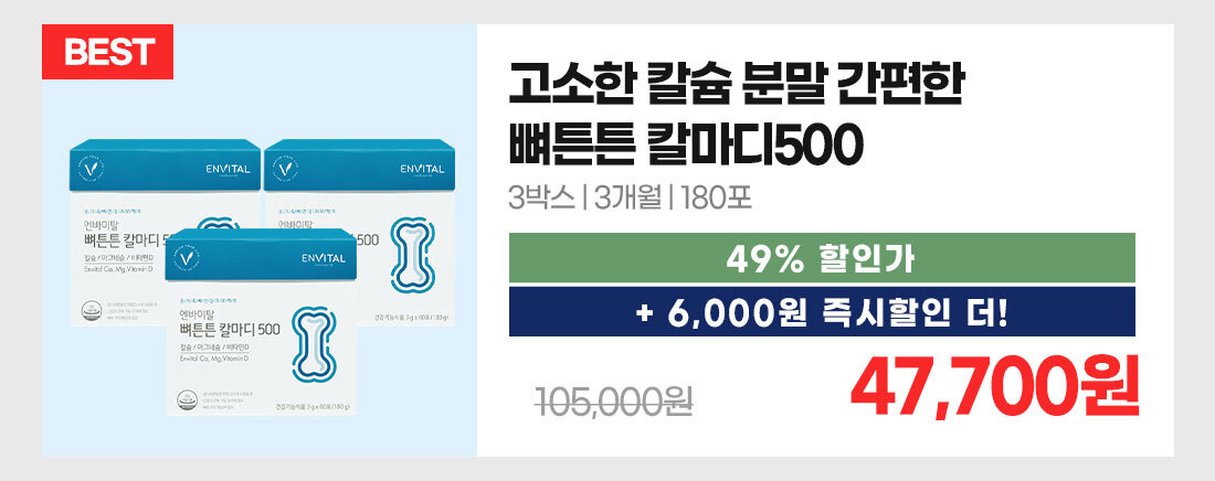 1일 2회, 1회 1포를 물과 함께 섭취하십시오 [섭취 시 주의사항] 유통기한을 확인하시기 바라며, 섭취량 및 섭취방법을 준수하시기 바랍니다. 특이체질, 알레르기 체질의 경우 성분을 확인하시고 섭취하여 주시기 바랍니다. 어린이의 경우 섭취 시 목에 걸릴 우려가 있으니 보호자의 지도하에 섭취하여 주시기 바랍니다. 제품 개봉 또는 섭취 시 포장재에 의해 상처를 입을 수 있으니 주의하시기 바랍니다. 고칼슘혈증이 있거나 의약품 복용 시 전문가와 상담하십시오. 이상사례 발생 시 섭취를 중단하고 전문가와 상담하십시오. [보관 상 주의사항] 직사광선을 받지 아니하는 서늘한 곳에서 보관 및 유통하시고, 어린이의 손에 닿지 않도록 주의하시기 바랍니다.