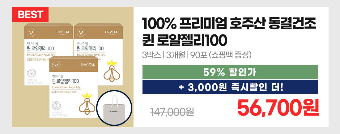 - home > 기능별 > 피로개선/면역력/항산화 > 엔바이탈 퀸 로얄젤리 100 1g X 30포