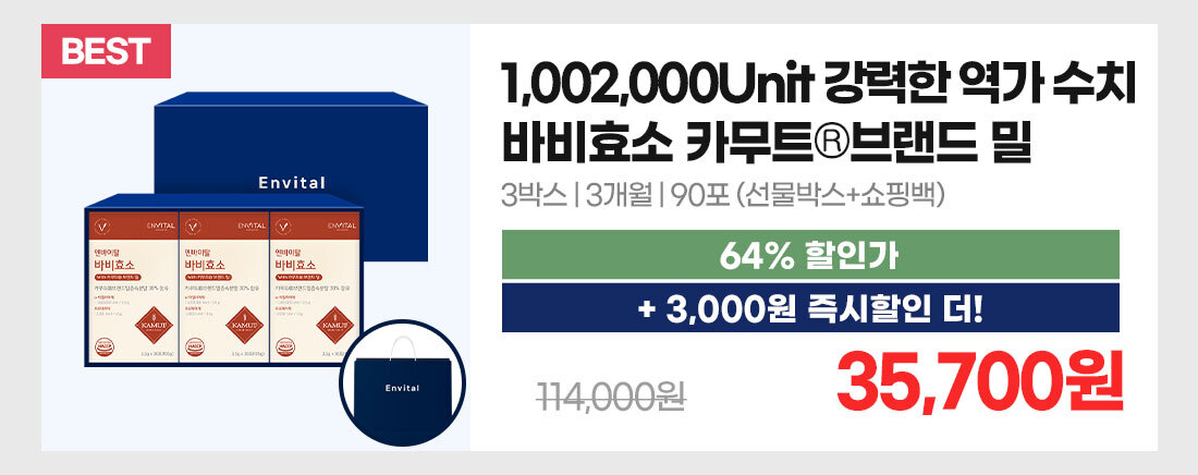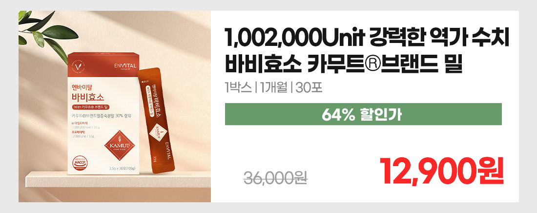 home > 베스트 > 엔바이탈 바비효소 with 카무트®브랜드밀 3.5g X 30포